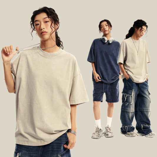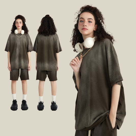 100% cotton round neck acid wash short-sleeved American street oversized gradient T-shirt