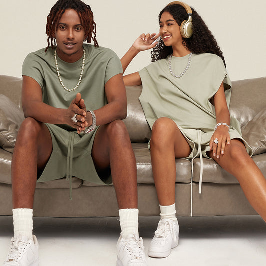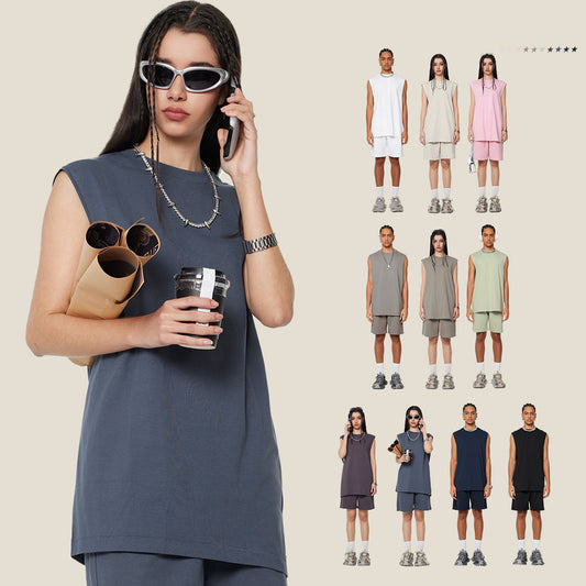 305G cool fabric solid color sports vest oversized fitness vest T-shirt