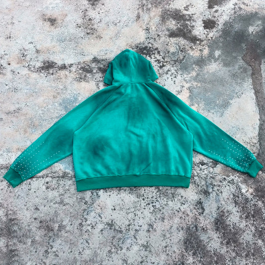 100% Cotton Heavyweight Zipper Hoodies Custom Screen Printed Men Oversized Fit Vintage Washed Rhinestone Sunfaded Hoodie
