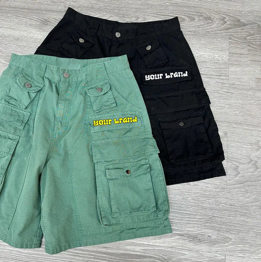 100% Cotton Streetwear Cargo Shorts Oversized Fit Men Custom Logo Printing Utility Pockets Cotton Shorts