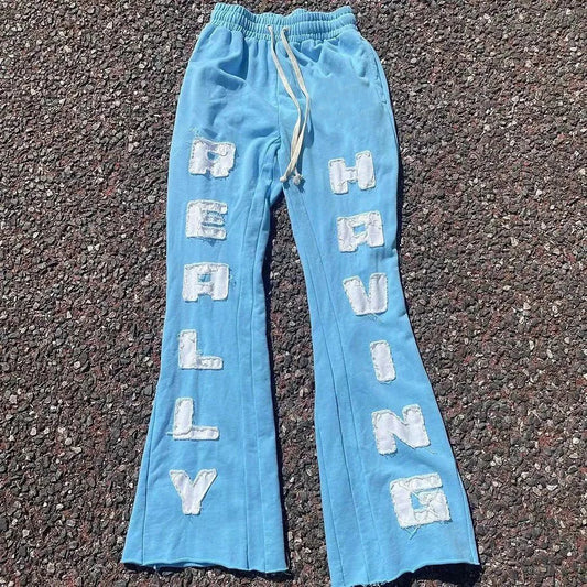 100% Cotton Hravyweight Sweatpants Custom Embroidery Logo Patched Men Flared Leg Sweatpants