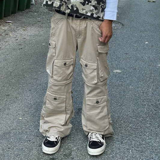 100% Cotton Woven Pants Trousers Custom Multi Pockets Men Oversized Wide Leg Cargo Pants