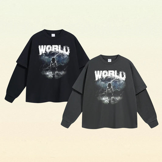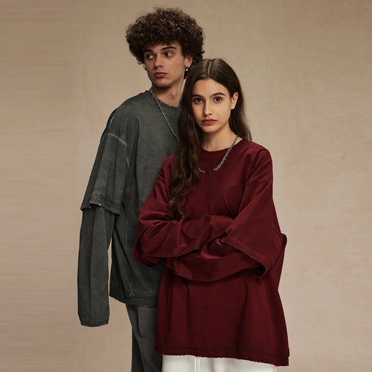 305 Gsm Thick Cotton Heavyweight Blank Tshirts Custom Distressed Vintage Washed Men Double Layer Long Sleeve Tshirt