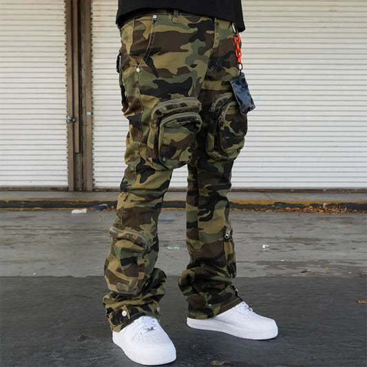 Clothing Manufacturer Jeans Men High Quality Multi- Functional Cargo Jeans Camo Pants Baggy Flare Stack Pockets Jeans