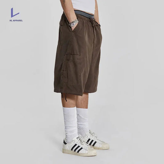 Clothing Factory 100% Cotton Shorts Pants Men Oversized Wide Leg Shorts Custom Big Pocket Streetwear Baggy Cargo Shorts