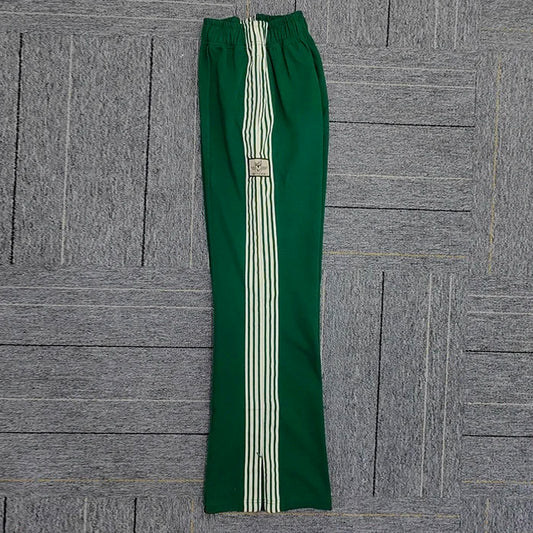 Clothing Suppliers Oem Customized Stripe Tape Side Sports Pants Men Custom Logo Patched Flare Leg Jersey Sweatpants
