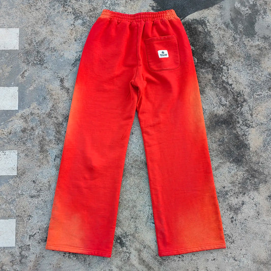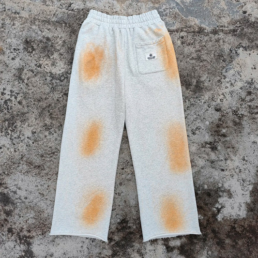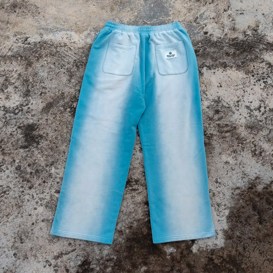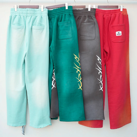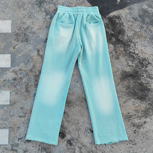 Screen Printed logo Heavy Cotton Wide Leg Sweatpants Custom Vintage Washed Men Sun Faded Raw Hem Baggy Fit Sweatpants