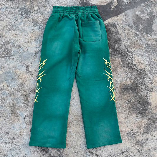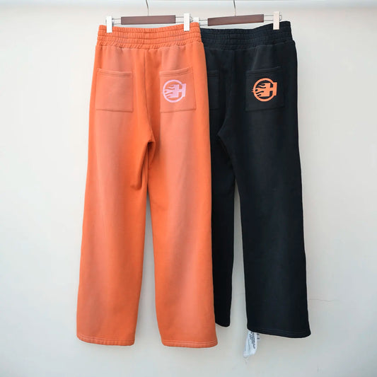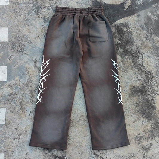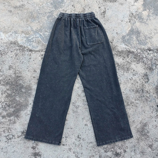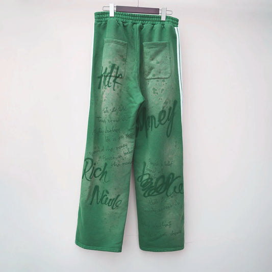 Heavyweight French Terry Joggers Pants Vintage Washed Casual Mid Sweatpants Custom Striped Trimmed Side Graffiti