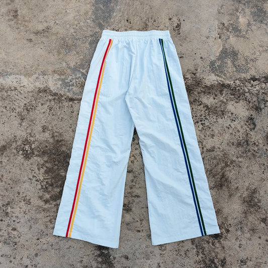 Windbreaker Track Pants Custom Embroidery logo Men Side Button up Wide Leg Nylon Jogger Striped Track Pants