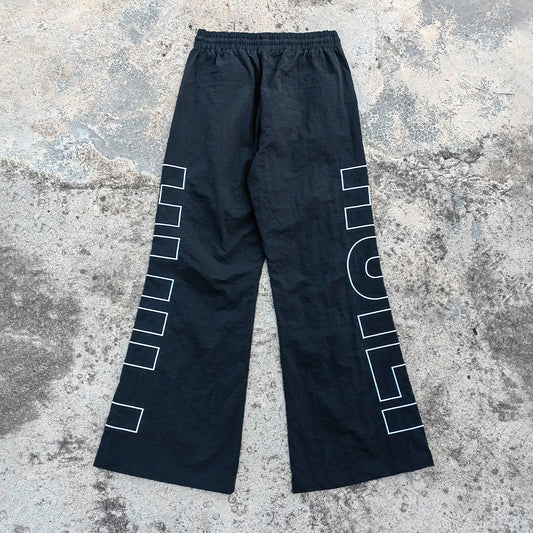 Lightweight Custom Embroidery logo Sports Nylon Track Pants Men Elastic Waist Oversized Flared Wide Leg Baggy Track Pants