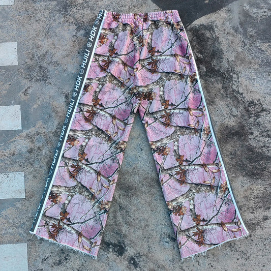 Unisex Oversized Wide Leg Track Pants Custom Allover Printed French Terry Men Raw Hem Pink Camo Sweatpants
