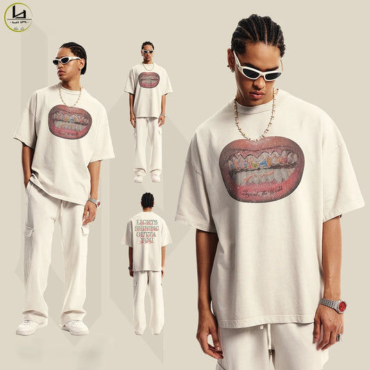 High Street Oversized Fit Unisex Dtg Printed Graphic Tees Custom Vintage Cotton Men 310Gsm Heavyweight T Shirt