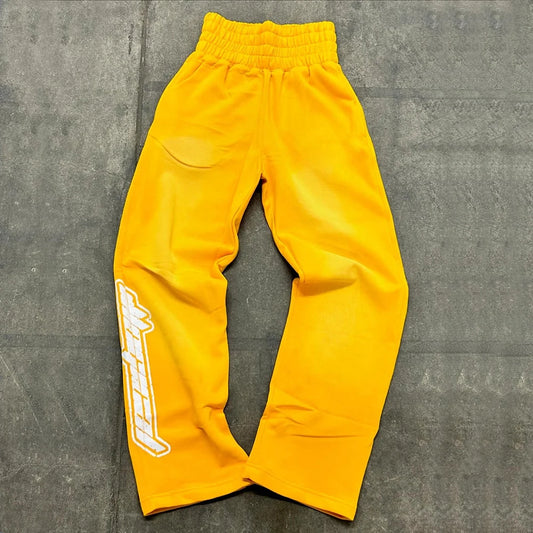 Screen Printing Logo Sweat Pants Men Custom Wide Waist Vintage Washed Straight Leg Sun Faded Sweatpants