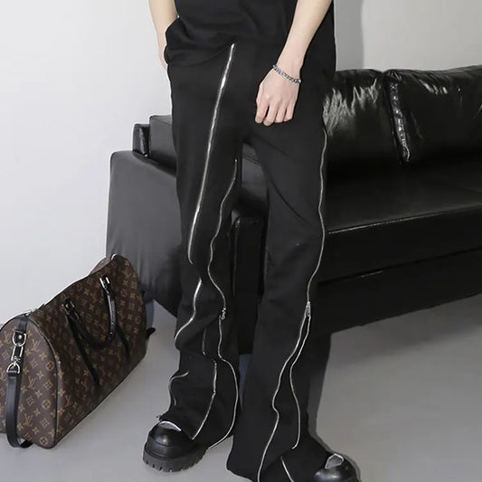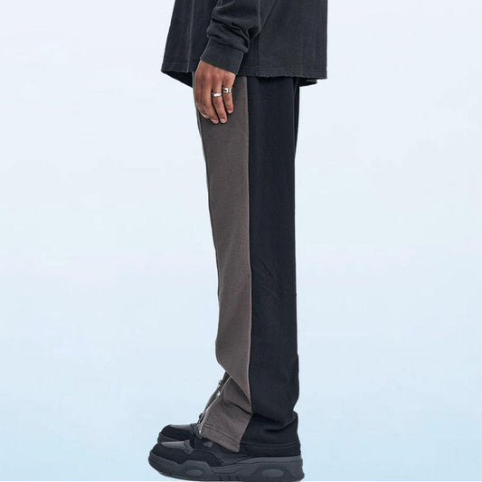 Full zipper Folded corner High Street slim sweatpants in black