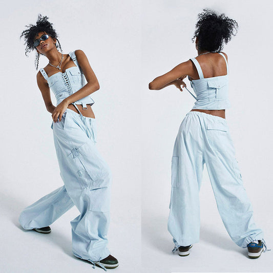 Wide-leg Nylon overalls custom logo adjustable leg Jogging