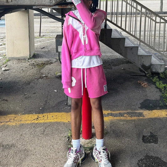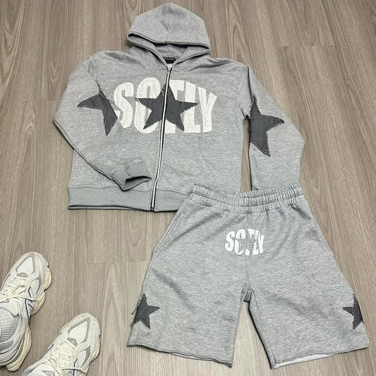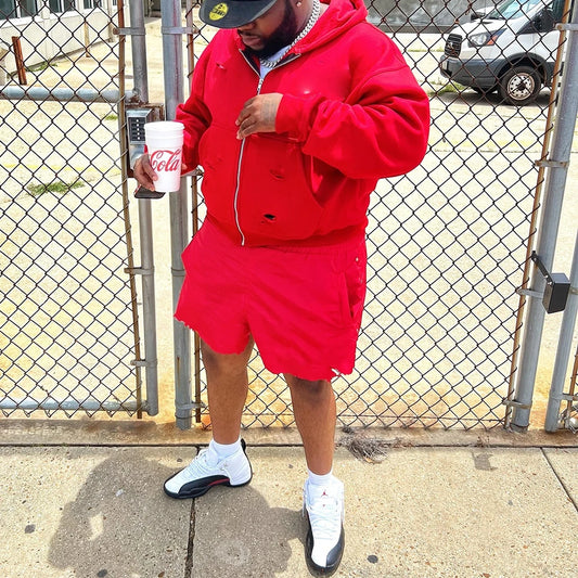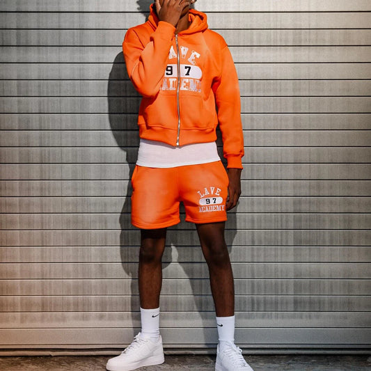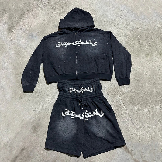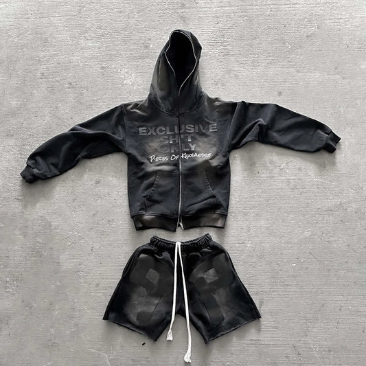 Custom Streetwear Tracksuits Sweatsuits Sets Taw Piece Men Zip Up Hoodie Distressed Shorts Sets