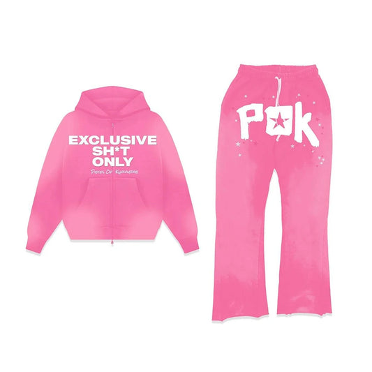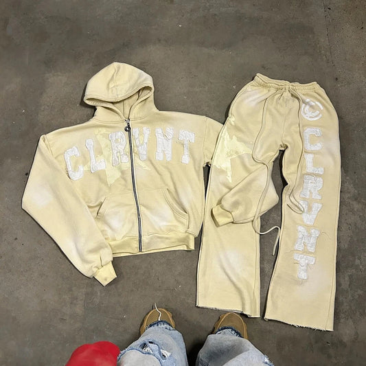 Oem Streetwear Tracksuits Sets Custom Embroidery Logo Applique Sweatsuits Men Two Piece Set Zip Up Hoodie Sweatpants