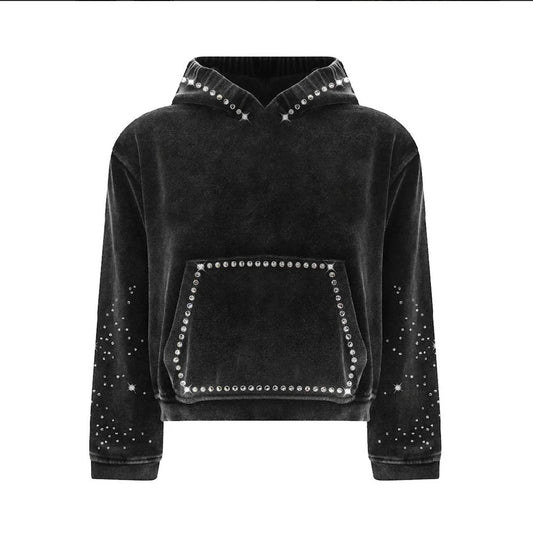 Winter New Style Two Piece Hoodie Sweatpants Sets Custom Vintage Washed Men Embroidery Logo Rhinestone Tracksuits Set