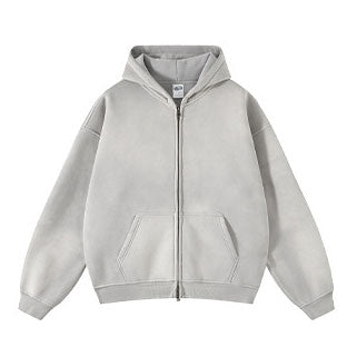 Low Moq High Street Unisex Oversized Heavyweight Cotton Hoodie Jacket Men Custom Vintage Washd Two Way Zip Up Hoodie