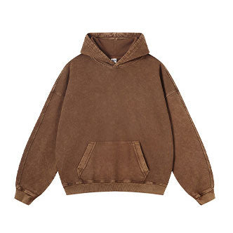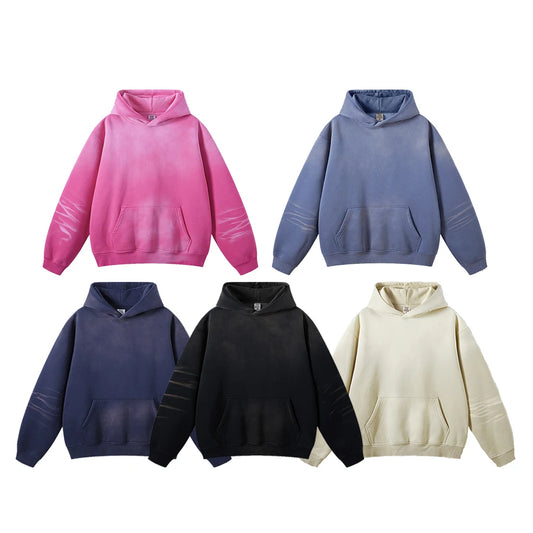Winter Heavyweight Cotton Unisex Oversized Pullover Hoodies Custom Vintage Washed Men Fleece Lining Sun Faded Hoodie