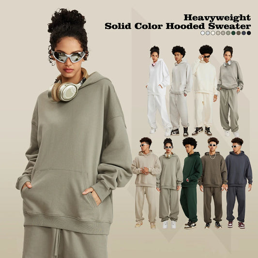 Hot Selling Solid Color Unisex Blank Pullover Hoodies Custom 445Gsm Thick Cotton Men French Terry Heavyweight Hoodie