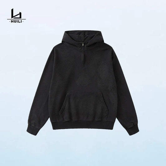 Wholesale Vintage Heavyweight Half-Zip Hoodie in Acid Wash Custom Logo Pullover Acid Wash Streetwear