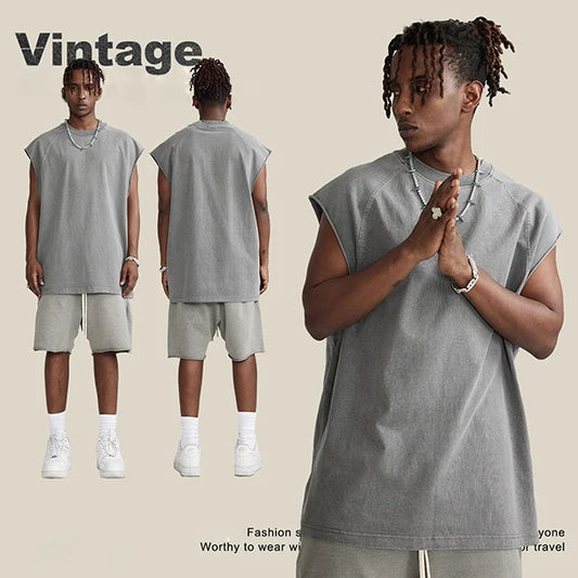 Huili Factory Heißer Verkauf Sommer Streetwear Blank Plain Ärmelloses T-Shirt Custom Vintage Washed Herren Schweres Baumwoll-T-Shirt