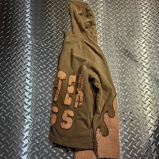 Huili Factory Hochwertiger, individueller Vintage-Hoodie mit verwaschenem Reißverschluss für Herren, übergroßer, schwerer Patchwork-Hoodie mit Distressed-Stickerei