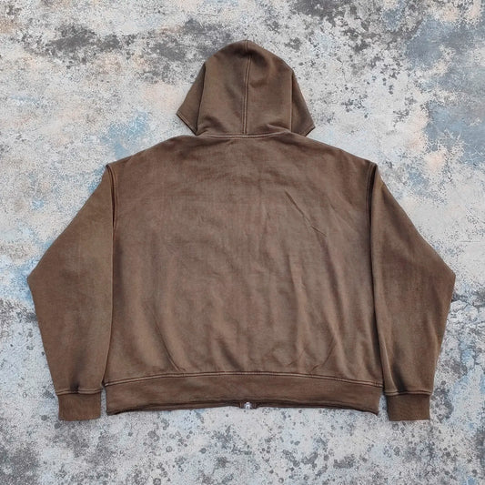 Heavyweight Cotton Vintage Washed Hoodies Custom Embroidery logo Patched Men Zip up Rhinestone Hoodie