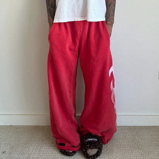 Heavyweight Cotton Vintage Sweat Pants Custom Printing Men Acid Washed Distressed Oversized Wide Leg Baggy Sweatpsnts