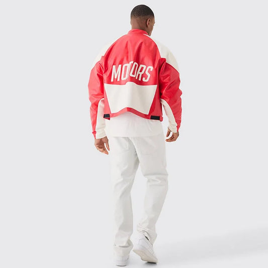 High Quality Custom Boucle PU Patchwork Bomber Racing Jacket Boxy Zipper Race Car Jackets Motorcycle Jacket For Men