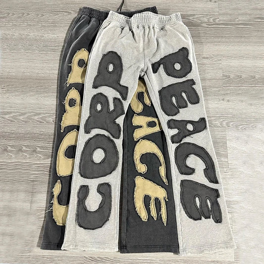 Huilin Neue Ankunft Schwere Trainingshose Benutzerdefinierte Farbblock Stickerei Patches Vintage Männer Weites Bein Ausgestellte Jogginghose
