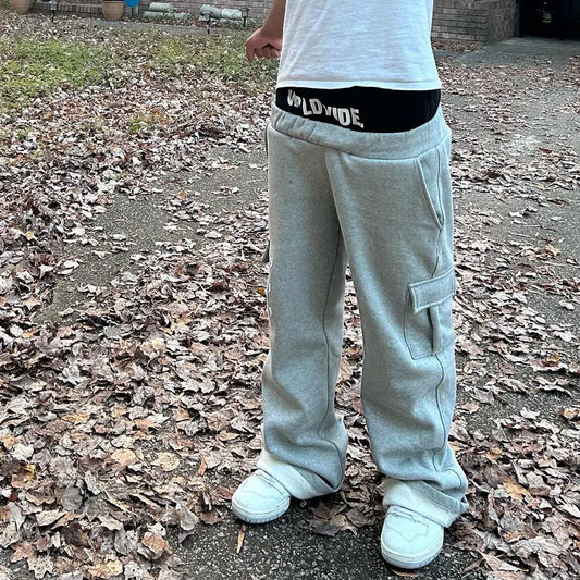 Huilin Hersteller Oem Loose Fit Dicke Baumwolle Weite Bein Trainingshose Männer Custom Heavyweight Doppel Taille Jogginghose