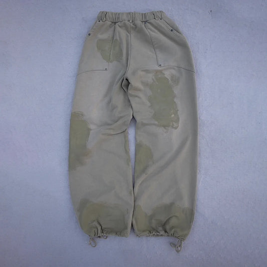 Hersteller Oem Schwere Baumwoll-Trainingshose mit seitlichen Strasssteinen für Herren, individuell gewaschene, sonnenverblasste Nähhose mit weitem Bein im Vintage-Stil