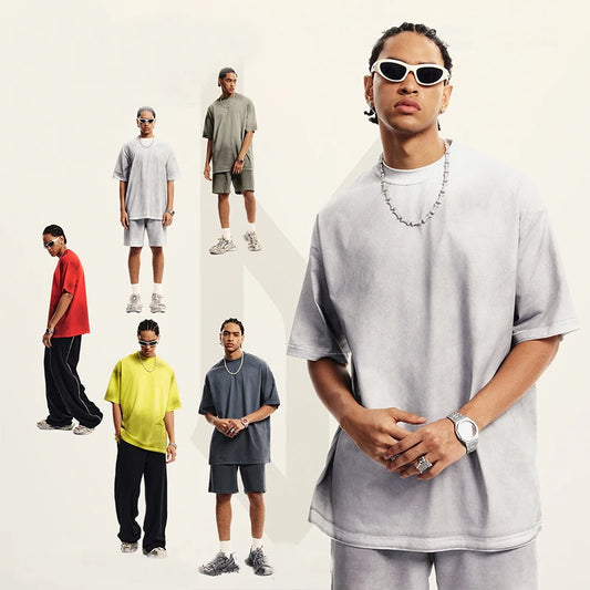 Huili Manufacturer Herren-Übergroßes T-Shirt mit Säurewaschung, 100 % Baumwolle, bedruckt, schweres, individuelles, hochwertiges T-Shirt für Männer