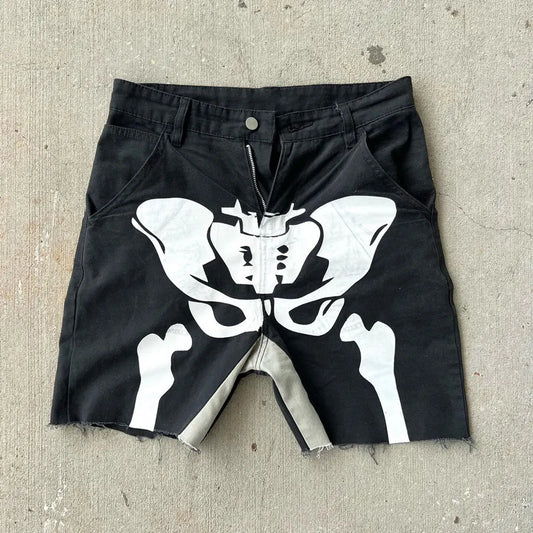 HL Hersteller Oem Zip Fly Twill Cargo Shorts Männer Custom Skeleton Graphic Print Raw Edge Saum Baumwollshorts