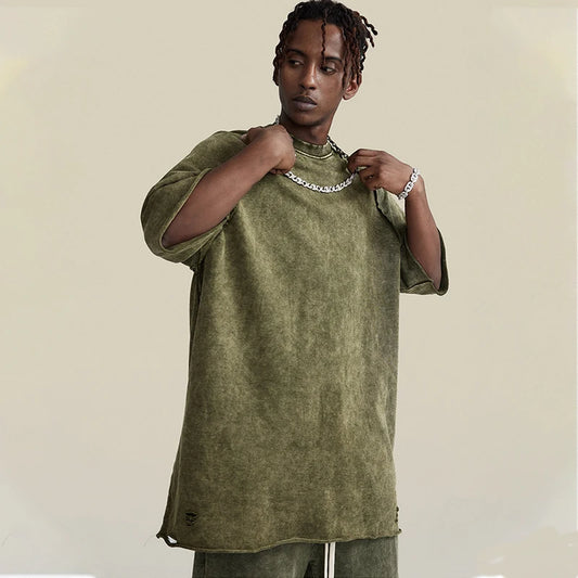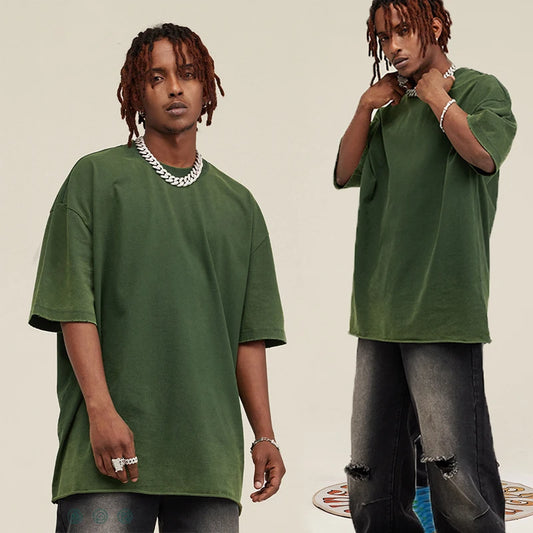 Huili Hersteller Frühling und Sommer High Street schwere Waschung 270g Anti-Auto-Prozess lose große Größe einfarbig schulterfrei kurzärmeliges T-Shirt