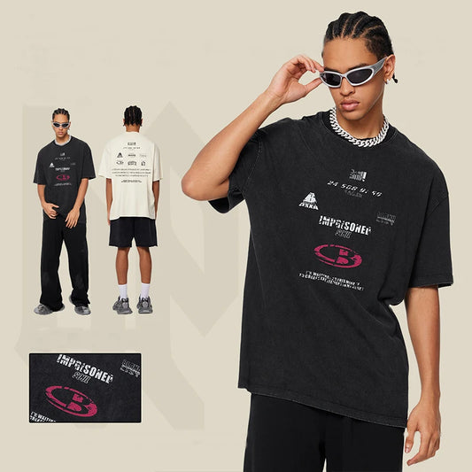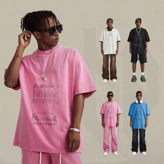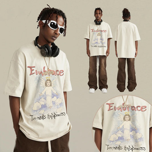 Huili Manufacturer Sommer-T-Shirt mit Hip-Hop-Street-Print, 100 % Baumwolle, 270 g/m², übergroßes gewaschenes Herren-T-Shirt