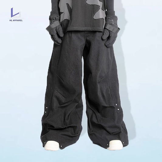 HL Hersteller Großhandel schwarze Loose Fit Fallschirm Cargo gestapelte Hose benutzerdefinierte breite Bein Polyester Herren Flare Cargohose