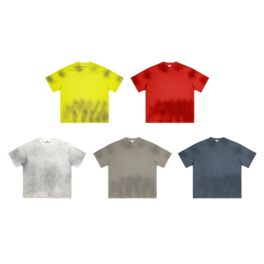 Huili Hersteller Gelbes, cooles Sommer-T-Shirt mit kleinem Ausschnitt, altes, schmutziges Ödland-Stil, halbärmeliges Vintage-T-Shirt