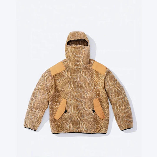 HL Hersteller Großhandel Winter Wolle warm Schlange Muster Hoodie benutzerdefinierte Sherpa Patchwork Vollgesichtsmaske Hoodie mit Augenlöchern