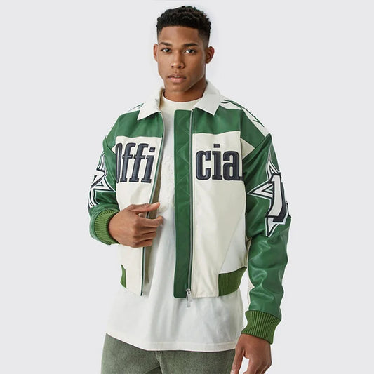 Men's Jacket Racing Style Custom Patchwork Letter Embroidery Moto Jacket PU Leather Bomber Jacket Boxy Fit