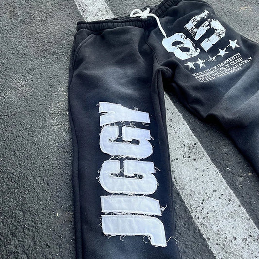 Huilin OEM-Applikationsstickerei, gepatchter Kapuzenpullover, Jogginghose, Trainingsanzug-Set für Herren, individuell verwaschener Vintage-Stil, zweiteiliger Trainingsanzug