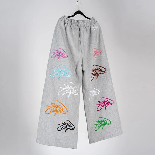 Oem Heavyweight 100% Cotton Oversized Wide Leg Sweat Track Pants Custom Embroidery Logo Men Baggy Sweatpants