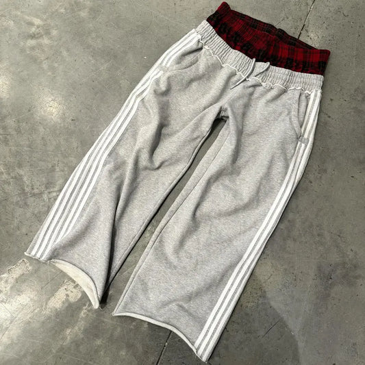 Huilin Oem Baggy Übergroße Jogginghose mit weitem Bein für Herren, individuell geschnittene Kanten, roher Saum, gestreifte Seite, doppelte Taille