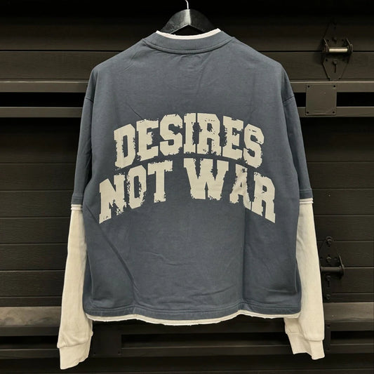 Oem Heavyweight 100% Cotton Tshirts Custom Logo Printed Men Color Block Double Layer Waffle Long Sleeve T Shirt