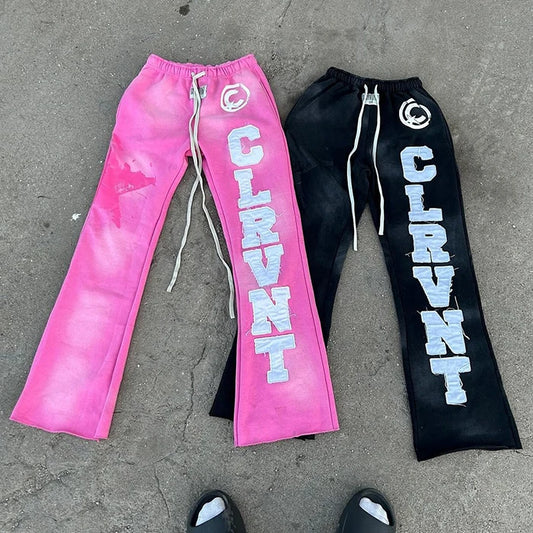 OEM-Hersteller Vintage Sunfaded Washed Heavyweight French Terry Sweatpants Benutzerdefinierter Logo-Druck Herren Strass Flared Sweatpants