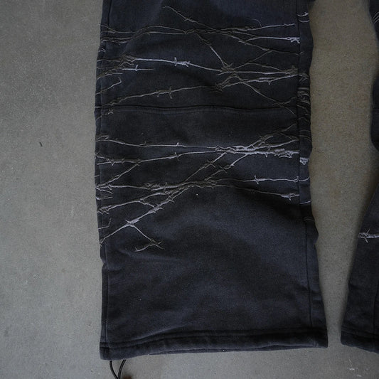 Huilin Oem Dicke Baumwolle Vintage Washed Jogginghose Männer Benutzerdefinierte Distressed Stickerei Logo Patched Applique Ausgestellte Jogginghose
