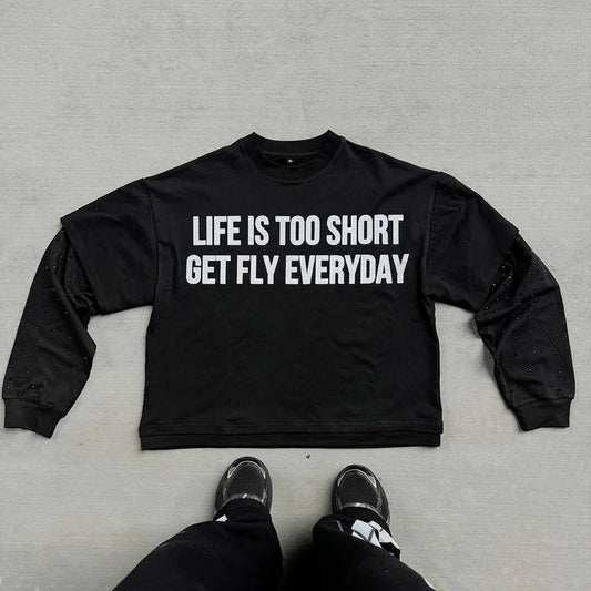 OEM Unisex Heavyweight Thick Cotton Tshirts Custom Screen Printing Men Rhinestone Double Layer Long Sleeve T Shirt
