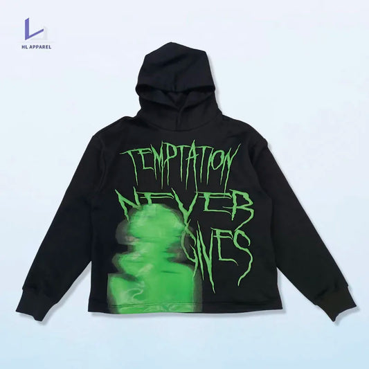 HL OEM Großhandel schwerer Baumwoll-Hoodie mit schwarzem Rohsaum, individuell bedruckter Y2K-Vintage-Grafik-Luxus-Hoodie für Männer